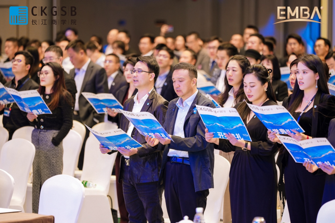 “我站在长江商学院 EMBA 的新起点,庄严承诺:以无畏之心,勇探商业之可能;以赤诚之心,坚守道德之根本;以拳拳之心,创造社会之价值……” 全体新生起立,高举右拳,齐声诵读入学誓词。铿锵有力的誓言回荡在现场,既是对自我的期许,更是对时代的承诺。
