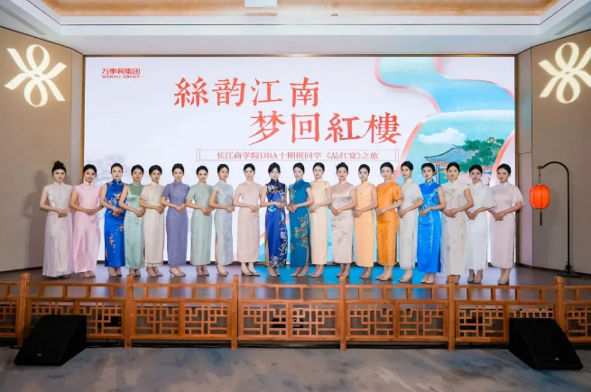 三天课程中,来自长江DBA各期班级的校友同聚一堂,教授们带来全球视野的前沿洞察,企业家导师分享实战经验,遥望科技与珀莱雅等代表性企业的参访,则让品牌战略从课堂走进现实。而夜晚的“品红宴”“又见宋韵”晚宴等课后活动,更是别开生面的文化体验。从缂丝菜单到AI丝绸投影,从红楼菜品到古典乐章,每一个环节都承载着对传统文化的致敬,也唤醒了同学之间更深层次的情感共鸣。