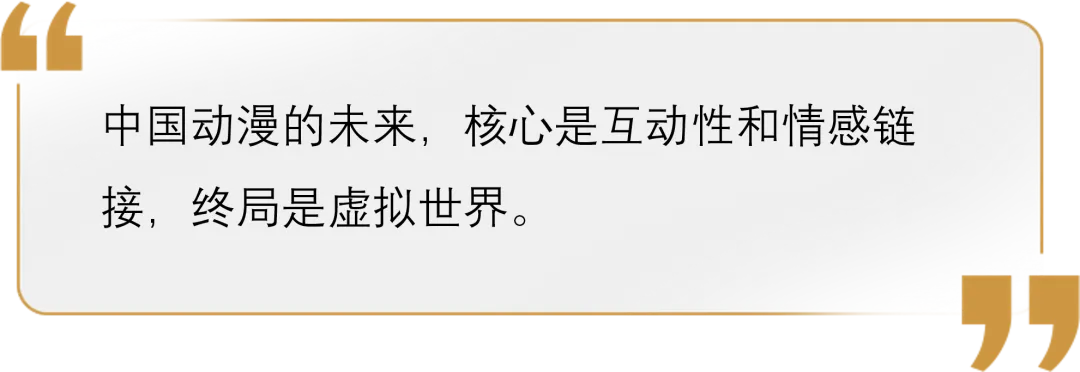在手机掌握未来的当下,他提出中国动漫未来的核心依然是互动性和情感链接,互动性要有情感,终局是虚拟世界,而在虚拟世界的八大要素中,虚拟形象是关键要素。“如果没有虚拟形象,就没有进入虚拟世界的门票。”