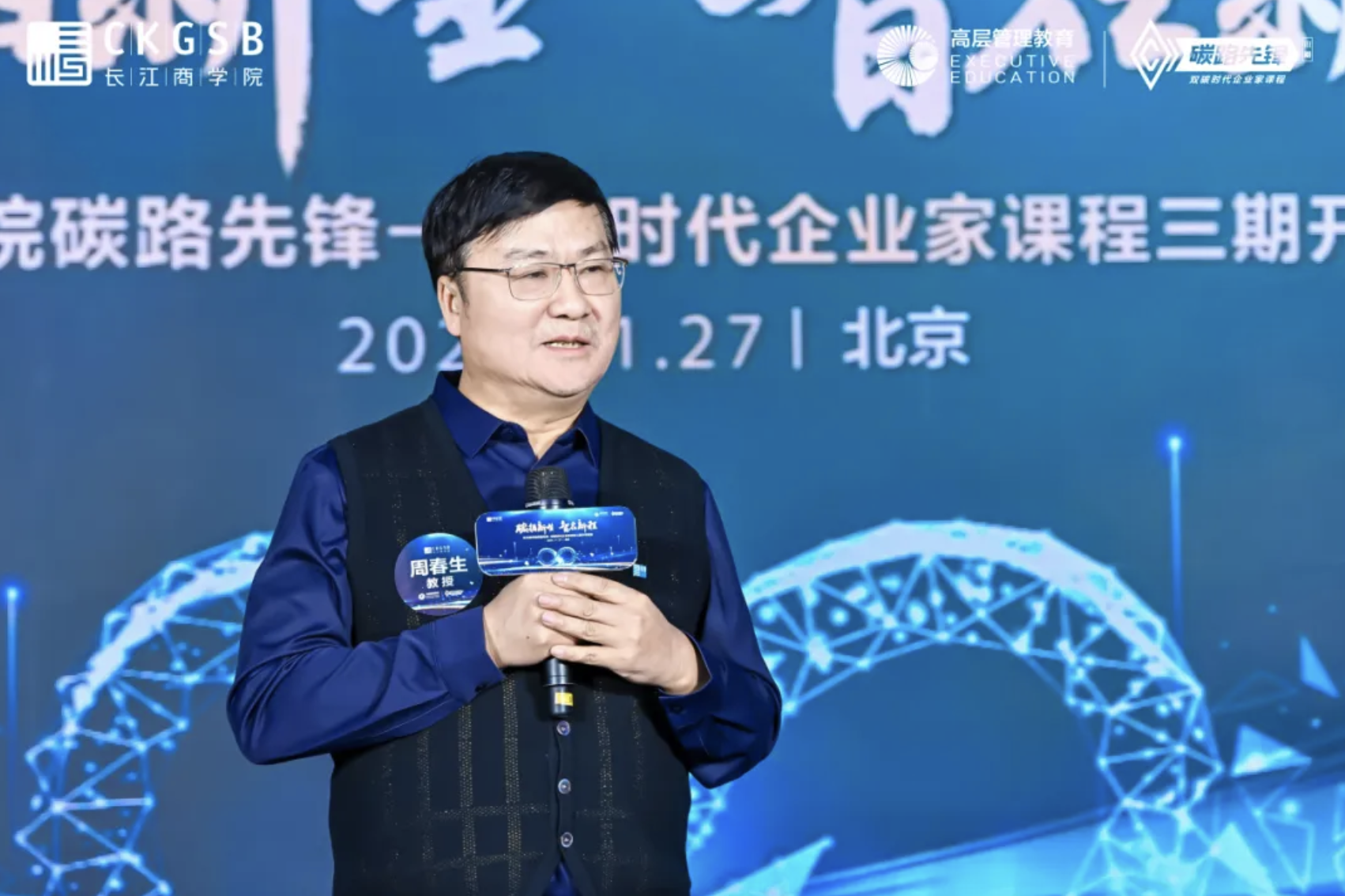 典礼伊始,普林斯顿大学金融学博士、长江商学院金融学教授、高层管理教育项目副院长、EMBA项目学术主任、长江商学院教育发展基金会理事长周春生教授,对碳路先锋三期班同学表示了热烈的欢迎。